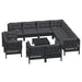 12-tlg. Garten-Lounge-Set mit Kissen Schwarz Massivholz Kiefer