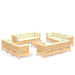 13-tlg. Garten-Lounge-Set mit Creme Kissen Kiefernholz