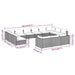 Entspannen Sie sich und genießen Sie Ihre Freizeit mit diesem trendigen Garten-Lounge-Set! Es ist dafür gedacht, eine Vielzahl unterschiedlicher Bedürfnisse zu erfüllen. Robuster Rahmen: Dieses Terrassensofa verfügt über einen stabilen, pulverbeschichteten Stahlrahmen und verchromte Kunststofffüße, was es äußerst langlebig macht.Erstklassiges Material: Das Gartensofa ist aus wasserabweisendem PE-Rattan gefertigt, wodurch es leicht zu reinigen, strapazierfähig und für den täglichen Gebrauch im Freien geeignet ist.Modulares Design: Dank des modularen Designs lässt sich das Möbelset in jeder beliebigen Anordnung aufstellen oder mit anderen modularen Sofaelementen kombinieren, um Ihren Bedürfnissen gerecht zu werden.Bequeme Kissen: Die dick gepolsterten und abnehmbaren Sitzkissen und Rückenkissen sorgen für optimalen Komfort. Hinweis:Um die Lebensdauer deiner Gartenmöbel zu verlängern, empfehlen wir dir, sie mit einer wasserdichten Hülle zu schützen.