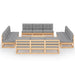 13-tlg. Garten-Lounge-Set mit Kissen Kiefer Massivholz