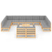13-tlg. Garten-Lounge-Set mit Kissen Massivholz Kiefer