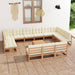 14-tlg. Garten-Lounge-Set Kissen Honigbraun Kiefer Massivholz