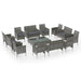 16-tlg. Garten-Lounge-Set mit Auflagen Poly Rattan Grau