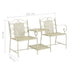 Dieser Zweisitzer im Vintage-Look ist eine praktische und dekorative Ergänzung für Ihren Garten! Der Zweisitzer im britischen Stil ist aus pulverbeschichtetem Stahl gefertigt, wodurch er sehr stabil, langlebig und rostbeständig ist. Die schicke, handbemalte Dekoration mit Rostfinish lässt diese stilvolle Gartenbank in jedem Garten, auf jeder Terrasse oder jedem Balkon erstrahlen. Der integrierte Tisch und das untere Regal zwischen den Sitzen dienen als ideale Ablage für Getränke, Essen, Bücher und andere Gegenstände, die Sie gerne in Reichweite halten möchten. Führen Sie mit Ihrem Liebsten eine nette, intime Unterhaltung auf diesem schicken Loveseat!