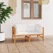 2-Sitzer-Gartensofa mit Creme Kissen Massivholz Teak