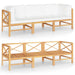 3-Sitzer-Gartensofa mit Creme Kissen Massivholz Teak