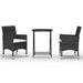 3-tlg. Bistro-Set Poly Rattan und Hartglas Schwarz