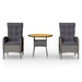 Dieses stilvolle Garten-Bistro-Set aus Poly Rattan wird ein echter Hingucker in deinem Garten bzw. auf deiner Terrasse sein. Es ist eine großartige Wahl zum Entspannen im Freien! Hochwertiges Material: Der robuste Stahlrahmen ist mit wetterfestem, handgeflochtenem PE-Rattan ummantelt. Dieses Terrassenset ist daher rost- und schimmelbeständig und bietet dir jahrelange Entspannung.Robuste und stabile Struktur: Die Stahlrahmen sorgen für Robustheit und Stabilität.Bequeme Stühle: Mit seiner geschwungenen Rückenlehne und Armlehnen weist der Gartensessel eine ergonomische Form auf und bietet höchsten Komfort. Die mitgelieferten Kissen sorgen für zusätzlichen Halt und der Bezug mit Reißverschluss lässt sich zum einfachen Waschen abnehmen.Gasfeder-Mechanismus: Dank des Gasfeder-Mechanismus lässt sich die Rückenlehne des Gartensessels an deine Position anpassen. Beim Drücken des seitlichen Knopfs kann die Rückenlehne in eine bequeme Position gebracht werden.Leichtbauweise: Dank ihrer Leichtbauweise können der Bistrotisch und die Stühle aus Poly Rattan einfach umgestellt werden. Hinweis:Um die Lebensdauer deiner Gartenmöbel zu verlängern, empfehlen wir dir, sie mit einer wasserdichten Hülle zu schützen.