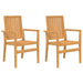 Genieße eine angenehme Mahlzeit oder einen Nachmittagstee in deinem Außenbereich an dieser Essgruppe aus Holz! Massives Teakholz: Massives Teakholz ist ein wunderschönes Naturmaterial. Es wurde abgelagert, getrocknet und anschließend fein geschliffen, um eine sehr glatte Optik und Haptik zu erhalten. Teakholz ist für seine außergewöhnliche Festigkeit und Witterungsbeständigkeit bekannt.Praktische Tischplatte: Die robuste Tischplatte bietet Platz für Snacks, Obstkörbe, Dekoartikel und andere Sachen.Bequemes Sitzerlebnis: Dank der Rückenlehne und der Armlehnen bietet der Gartenstuhl höchsten Sitzkomfort.Stapelbar: Der Essstuhl ist stapelbar und lässt sich daher bei Nichtgebrauch platzsparend verstauen.Einfach Reinigung: Durch die glatte Oberfläche lässt sich das Gartenmöbel-Set leicht mit einem feuchten Tuch reinigen. Gut zu wissen:Damit deine Gartenmöbel lange schön bleiben, empfehlen wir dir, sie mit einer wasserdichten Hülle zu schützen.