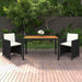 Mit ihrem eleganten und modernen Design ist diese Garten-Essgruppe eine großartige Wahl zum Essen oder Entspannen im Garten. Für den Außenbereich geeignet: Aus witterungsbeständigem und wasserfestem PE-Rattan gefertigt, ist diese Outdoor-Essgruppe leicht zu reinigen, strapazierfähig und für den täglichen Einsatz im Außenbereich geeignet.Erstklassiges Material: Dank der pulverbeschichteten Stahlrahmen sind Tisch und Stühle robust und stabil. Die Tischplatte besteht aus massivem Akazienholz mit natürlichen Öl-Finish, einem tropischen Hartholz, das witterungsbeständig und äußerst langlebig ist. Die dicken, weichen, mit Schaumstoff gefüllten Sitz- und Rückenkissen sorgen für zusätzlichen Sitzkomfort. Die abnehmbaren und waschbaren Kissenbezüge sind mit Reißverschlüssen versehen.Flexibles Design: Sie können die Rückenlehne nach unten bringen und die Stühle unter dem Tisch aufbewahren, um bei Nichtgebrauch wertvollen Stauraum zu sparen. Dank ihrer Leichtbauweise lassen sich alle Artikel leicht umstellen. Hinweis:Um die Lebensdauer deiner Gartenmöbel zu verlängern, empfehlen wir dir, sie mit einer wasserdichten Hülle zu schützen.