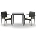 3-tlg. Garten-Essgruppe mit Kissen Schwarz Poly Rattan