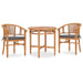 3-tlg. Garten-Essgruppe mit Sitzpolstern Teak Massivholz