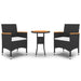 3-tlg. Garten-Essgruppe Poly Rattan Schwarz