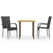 3-tlg. Garten-Essgruppe Poly Rattan Schwarz