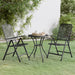 Setze dich hin und genieße ein angenehmes Abendessen oder jede andere Mahlzeit an dieser Garten-Essgruppe. Hochwertiges Material: Streckmetall ist eine Art von Blech, das geschnitten und gestreckt wurde, um ein regelmäßiges Muster aus einem gitterähnlichen Material zu bilden. Es ist stärker als ein gleich schweres Drahtgeflecht.E-Beschichtung: Die E-Beschichtung macht das Metall wetterfest und korrosionsbeständig. Daher ist die Essgruppe auf eine lange Lebensdauer ausgelegt und für den Außenbereich geeignet.Verstellbare Rückenlehne: Die Rückenlehnen dieser Essstühle lassen sich in 7 Positionen verstellen, um stets die bequemste Position zu finden.Klappstühle: Dank des Klappdesigns lassen sich die Terrassenstühle bei Nichtgebrauch platzsparend zusammenklappen. Hinweis:Um die Lebensdauer deiner Gartenmöbel zu verlängern, empfehlen wir dir, sie mit einer wasserdichten Hülle zu schützen.