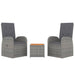 3-tlg. Garten-Lounge-Set Grau Poly Rattan & Massivholz Akazie