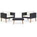 3-tlg. Garten-Lounge-Set mit Auflagen Poly Rattan Schwarz