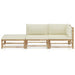 Schaffen Sie einen entspannenden Loungebereich mit diesem trendigen Garten-Lounge-Set aus Bambus. Dieses Garten-Lounge-Set besteht aus Bambus und ist daher robust, stabil und leicht zu reinigen. Die dick gepolsterten Kissen sorgen für zusätzlichen Komfort. Die Kissenbezüge sind abnehmbar und somit waschbar da sie mit Reißverschlüssen versehen sind. Dank seiner Leichtbauweise ist dieses Outdoor-Lounge-Set leicht zu umstellen. Dank des modularen Aufbaus können Sie das Möbel-Set nach Belieben in beliebiger Konfiguration aufstellen. Hinweis: Um die Lebensdauer Ihrer Gartenmöbel zu verlängern, empfehlen wir Ihnen, diese regelmäßig zu reinigen und im Freien vor Niederschlägen oder starken Sonnenstrahlen zu schützen.Reinigung: Verwenden Sie eine milde SeifenlösungLagerung: Wenn möglich, an einem kühlen, trockenen Ort im Innenbereich lagern. Wenn das Produkt im Freien gelagert wird, schützen Sie es mit einer wasserdichten Abdeckung. Wischen und trocknen Sie das überschüssige Wasser oder den Schnee nach Regen oder Schneefall von ebenen Flächen. Sorgen Sie für eine ausreichende Luftzirkulation, um feuchtigkeitsbedingte Schäden zu vermeiden.