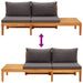 Dieses Garten-Lounge-Set aus Holz ist eine ausgezeichnete Wahl, um sich zu entspannen und das Wetter zu genießen, ein Nickerchen zu machen oder sich mit Ihrer Familie oder Freunden zu unterhalten. Mit seinem zeitlosen Design verleiht das Loungeset Ihrer Terrasse oder Ihrem Garten einen Hauch von rustikalem Charme. Das aus massivem Akazienholz gefertigte Outdoor-Möbelset ist wetterbeständig und äußerst langlebig. In Kombination mit den dick gepolsterten Kissen bietet dieses Terrassen-Lounge-Set höchsten Komfort. Der Tisch, der zu der Bank passt, kann je nach Bedarf links oder rechts montiert werden. Sie können die Sofagarnitur auch mit anderen modularen Segmenten kombinieren, um Ihre ganz persönliche Garten-Lounge-Garnitur zusammenzustellen! Hinweis: Um die Lebensdauer Ihrer Gartenmöbel zu verlängern, empfehlen wir Ihnen, diese regelmäßig zu reinigen und im Freien vor Niederschlägen oder starken Sonnenstrahlen zu schützen.Reinigung: Verwenden Sie eine milde Seifenlösung.Lagerung: Wenn möglich, an einem kühlen, trockenen Ort im Innenbereich lagern. Wenn das Produkt im Freien gelagert wird, schützen Sie es mit einer wasserdichten Abdeckung. Wischen und trocknen Sie das überschüssige Wasser oder den Schnee nach Regen oder Schneefall von ebenen Flächen. Sorgen Sie für eine ausreichende Luftzirkulation, um feuchtigkeitsbedingte Schäden zu vermeiden.
