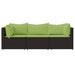 3-tlg. Garten-Lounge-Set mit Kissen Braun Poly Rattan