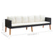 Genießen Sie einen entspannten, sonnigen Nachmittag mit Ihrer Familie und Freunden auf der Terrasse oder im Garten auf diesem Sofa mit Tisch! Dieses Lounge-Set verfügt über einen Rahmen aus pulverbeschichtetem Stahl und langlebiges PE-Rattan. Dadurch ist es stabil, robust und pflegeleicht. Die dick gepolsterten Kissen und die extra tiefen Sitzflächen sorgen für höchsten Sitzkomfort. Der Couchtisch bietet den idealen Platz, um Snacks und Getränke griffbereit zu halten. Dank seiner Leichtbauweise und des modularen Designs lässt sich das Möbelset einfach umstellen und umordnen, um zu jeder Einrichtung zu passen. Hinweis: Wir empfehlen, das Set bei Regen, Schnee und Frost abzudecken, um seine Lebensdauer zu verlängern.