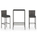3-tlg. Gartenbar-Set mit Kissen Poly Rattan Grau