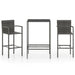 3-tlg. Gartenbar-Set Poly Rattan Grau
