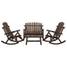 Genieße eine gemütliche Zeit mit deiner Familie in deinem Außenbereich auf diesem Garten-Loungemöbel-Set aus Holz! Fichten-Massivholz: Aus massivem Fichtenholz gefertigt, ist das Loungemöbel-Set langlebig und stabil.Outdoor Schaukelstühle: Entspanne dich, nimm eine komfortable Sitzposition ein und lass dich sanft schaukeln auf diesem Garten-Schaukelstuhl und Garten-Schaukelbank Set.Komfortables Sitzerlebnis: Mit ihren geschwungenen, ergonomischen Sitzflächen, Armlehnen und Rückenlehnen im Adirondack-Stil bieten die Loungesessel und die Schaukelbank aus Holz höchsten Sitzkomfort nach einem langen Tag.Stabile Tischplatte: Die robuste Tischplatte des Kaffeetisches bietet den idealen Platz für Getränke und Snacks. Gut zu wissen:Damit deine Gartenmöbel lange schön bleiben, empfehlen wir dir, sie mit einer wasserdichten Hülle zu schützen.Es wird empfohlen, das Holz mit einem Außenlack zu behandeln, um die Lebensdauer des Produkts zu verlängern.