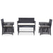 4-tlg. Garten-Lounge-Set mit Auflage Poly Rattan Schwarz