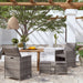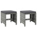 Dieses 4-teilige Gartenstuhl- und Hocker-Set stellt eine perfekte Ergänzung zu Ihrem Garten, Ihrer Terrasse bzw. Ihrem Outdoor-Wohnbereich dar. Der robuste Stahlrahmen ist mit wetterfestem PE-Rattan umwickelt. Das Gartenset aus Stühlen und Hockern ist rost- und schimmelbeständig und bietet jahrelange, hochwertige Entspannung. Der Terrassenstuhl ist mit Rückenlehne und Armlehnen für maximalen Komfort ausgestattet. Das mitgelieferte Sitzkissen und das Rückenkissen bieten zusätzlichen Sitzkomfort. Hinweis: Um die Lebensdauer Ihrer Gartenmöbel zu verlängern, empfehlen wir Ihnen, diese regelmäßig zu reinigen und bei Nichtgebrauch im Freien abzudecken.Reinigung: Verwenden Sie eine milde Seifenlösung.Lagerung: Wenn möglich, an einem kühlen, trockenen Ort im Innenbereich lagern. Wenn das Produkt im Freien gelagert wird, schützen Sie es mit einer wasserdichten Abdeckung. Wischen und trocknen Sie das überschüssige Wasser oder den Schnee nach Regen oder Schneefall von der ebenen Fläche. Sorgen Sie für eine ausreichende Luftzirkulation, um feuchtigkeitsbedingte Schäden zu vermeiden.