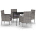 Genießen Sie eine schöne Mahlzeit oder einen Nachmittagstee in Ihrem Außenbereich mit diesem Garten-Essset! Mit seinem eleganten Design wird es zum Blickfang in Ihrem Garten und auf Ihrer Terrasse! Das praktische Esszimmer-Set für draußen hat einen Stahlrahmen, der es stark und robust macht. Die Gartenstühle sind aus wasserbeständigem und wartungsfreiem PE-Rattan gefertigt und eignen sich daher perfekt für den Einsatz im Freien. Die glatte Glastischplatte ist mit einem feuchten Tuch leicht zu reinigen und eignet sich hervorragend zum Abstellen von Speisen, Getränken und anderen dekorativen Gegenständen. Darüber hinaus sind die dicken, abnehmbaren Sitzkissen sehr kuschelig. Hinweis: Um die Lebensdauer Ihrer Gartenmöbel zu verlängern, empfehlen wir Ihnen, diese regelmäßig zu reinigen und im Freien vor Niederschlägen oder starken Sonnenstrahlen zu schützen.Reinigung: Verwenden Sie eine milde Seifenlösung.Lagerung:Wenn möglich, an einem kühlen, trockenen Ort im Innenbereich lagern. Wenn das Produkt im Freien gelagert wird, schützen Sie es mit einer wasserdichten Abdeckung. Wischen und trocknen Sie das überschüssige Wasser oder den Schnee, nach Regen oder Schneefall. Sorgen Sie für eine ausreichende Luftzirkulation, um feuchtigkeitsbedingte Schäden zu vermeiden.