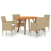 Schaffen Sie mit dieser Garten-Essgruppe eine überzeugende und zusammenhängende Ästhetik in Ihrem Außenbereich! Dieser Gartentisch ist aus massivem Akazienholz gefertigt, was ihn robust und stabil macht. Durch die geölte Oberfläche lässt sich der Tisch zudem leicht mit einem feuchten Tuch reinigen. Darüber hinaus tragen die geschwungenen Beine zu seinem stilvollen Design bei. Mit einem Stahlrahmen, der mit wetterfestem PE-Rattan bespannt ist, sind diese Esszimmerstühle robust und leicht zu reinigen. Jeder Sitz ist mit einem dick gepolsterten Kissen ausgestattet, das für zusätzlichen Komfort beim Entspannen sorgt. Hinweis: Um die Lebensdauer Ihrer Gartenmöbel zu verlängern, empfehlen wir Ihnen, diese regelmäßig zu reinigen und bei Nichtgebrauch im Freien abzudecken.Reinigung: Verwenden Sie eine milde SeifenlösungLagerung: Wenn möglich, an einem kühlen, trockenen Ort im Innenbereich lagern. Wenn das Produkt im Freien gelagert wird, schützen Sie es mit einer wasserdichten Abdeckung. Wischen und trocknen Sie das überschüssige Wasser oder den Schnee nach Regen oder Schneefall von der ebenen Fläche. Sorgen Sie für eine ausreichende Luftzirkulation, um feuchtigkeitsbedingte Schäden zu vermeiden.