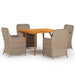 Schaffen Sie mit dieser Garten-Essgruppe eine überzeugende und zusammenhängende Ästhetik in Ihrem Außenbereich! Der Gartentisch ist aus massivem Akazienholz gefertigt, was ihn robust und stabil macht. Durch die mit Öl behandelte Oberfläche lässt sich der Tisch zudem mit einem feuchten Tuch leicht reinigen. Darüber hinaus tragen die geschwungenen Beine zu seinem stilvollen Design bei. Mit einem Stahlrahmen versehen, der mit wetterbeständigem PE-Rattan geflochten ist, sind die Essstühle robust und leicht zu reinigen. Die dick gepolsterten Kissen sorgen für zusätzlichen Komfort beim Entspannen. Hinweis: Um die Lebensdauer Ihrer Gartenmöbel zu verlängern, empfehlen wir Ihnen, diese regelmäßig zu reinigen und bei Nichtgebrauch im Freien abzudecken.Reinigung: Verwenden Sie eine milde SeifenlösungLagerung: Wenn möglich, an einem kühlen, trockenen Ort im Innenbereich lagern. Wenn das Produkt im Freien gelagert wird, schützen Sie es mit einer wasserdichten Abdeckung. Wischen und trocknen Sie das überschüssige Wasser oder den Schnee nach Regen oder Schneefall von der ebenen Fläche. Sorgen Sie für eine ausreichende Luftzirkulation, um feuchtigkeitsbedingte Schäden zu vermeiden.