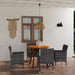 Schaffen Sie mit dieser Garten-Essgruppe eine überzeugende und zusammenhängende Ästhetik in Ihrem Außenbereich! Dieser Gartentisch ist aus massivem Akazienholz gefertigt, was ihn robust und stabil macht. Durch die geölte Oberfläche lässt sich der Tisch zudem leicht mit einem feuchten Tuch reinigen. Darüber hinaus tragen die geschwungenen Beine zu seinem stilvollen Design bei. Mit einem Stahlrahmen, der mit wetterfestem PE-Rattan bespannt ist, sind diese Esszimmerstühle robust und leicht zu reinigen. Jeder Sitz ist mit einem dick gepolsterten Kissen ausgestattet, das für zusätzlichen Komfort beim Entspannen sorgt. Hinweis: Um die Lebensdauer Ihrer Gartenmöbel zu verlängern, empfehlen wir Ihnen, diese regelmäßig zu reinigen und bei Nichtgebrauch im Freien abzudecken.Reinigung: Verwenden Sie eine milde SeifenlösungLagerung: Wenn möglich, an einem kühlen, trockenen Ort im Innenbereich lagern. Wenn das Produkt im Freien gelagert wird, schützen Sie es mit einer wasserdichten Abdeckung. Wischen und trocknen Sie das überschüssige Wasser oder den Schnee nach Regen oder Schneefall von der ebenen Fläche. Sorgen Sie für eine ausreichende Luftzirkulation, um feuchtigkeitsbedingte Schäden zu vermeiden.