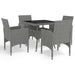 5-tlg. Garten-Essgruppe Grau Poly Rattan und Glas