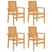 Genieße eine angenehme Mahlzeit oder einen Nachmittagstee in deinem Außenbereich an dieser Essgruppe aus Holz! Massives Teakholz: Massives Teakholz ist ein wunderschönes Naturmaterial. Es wurde abgelagert, getrocknet und anschließend fein geschliffen, um eine sehr glatte Optik und Haptik zu erhalten. Teakholz ist für seine außergewöhnliche Festigkeit und Witterungsbeständigkeit bekannt.Praktische Tischplatte: Die robuste Tischplatte bietet Platz für Snacks, Obstkörbe, Dekoartikel und andere Sachen.Bequemes Sitzerlebnis: Dank der Rückenlehne und der Armlehnen bietet der Gartenstuhl höchsten Sitzkomfort.Stapelbar: Der Essstuhl ist stapelbar und lässt sich daher bei Nichtgebrauch platzsparend verstauen.Einfach Reinigung: Durch die glatte Oberfläche lässt sich das Gartenmöbel-Set leicht mit einem feuchten Tuch reinigen. Gut zu wissen:Damit deine Gartenmöbel lange schön bleiben, empfehlen wir dir, sie mit einer wasserdichten Hülle zu schützen.
