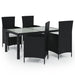 5-tlg. Garten-Essgruppe mit Auflagen Poly Rattan Schwarz