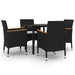 5-tlg. Garten-Essgruppe mit Auflagen Poly Rattan und Glas