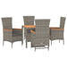 5-tlg. Garten-Essgruppe mit Kissen Grau Poly Rattan