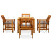 Schaffen Sie mit dieser Garten-Essgruppe eine überzeugende und zusammenhängende Ästhetik in Ihrem Außenbereich! Der Esstisch besteht aus massivem Akazienholz, einem Hartholz mit dichter Maserung, das ihn robust, langlebig und pflegeleicht macht. Auf der Holztischplatte können Speisen, Getränke und andere Gegenstände abgestellt werden. Mit einem Holzrahmen mit Öl-Finish verleihen diese Esszimmerstühle Ihrer Terrasse oder Ihrem Garten einen klassischen Look und bieten Ihrem Außenbereich ein natürliches Gefühl. Die dick gepolsterten Kissen sorgen zudem für zusätzlichen Sitzkomfort beim Liegen. Außerdem ist dieses Set mit einem feuchten Tuch leicht zu reinigen. Hinweis: Um die Lebensdauer Ihrer Gartenmöbel zu verlängern, empfehlen wir Ihnen, diese regelmäßig zu reinigen und im Freien vor Niederschlägen oder starken Sonnenstrahlen zu schützen.Reinigung: Verwenden Sie eine milde Seifenlösung.Lagerung: Wenn möglich, an einem kühlen, trockenen Ort im Innenbereich lagern. Wenn das Produkt im Freien gelagert wird, schützen Sie es mit einer wasserdichten Abdeckung. Wischen und trocknen Sie das überschüssige Wasser oder den Schnee nach Regen oder Schneefall von ebenen Flächen. Sorgen Sie für eine ausreichende Luftzirkulation, um feuchtigkeitsbedingte Schäden zu vermeiden.