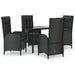 5-tlg. Garten-Essgruppe mit Kissen Schwarz Poly Rattan