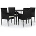 5-tlg. Garten-Essgruppe mit Kissen Schwarz Poly Rattan