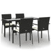 5-tlg. Garten-Essgruppe mit Kissen Schwarz Poly Rattan