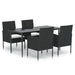 5-tlg. Garten-Essgruppe mit Kissen Schwarz Poly Rattan