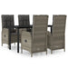 5-tlg. Garten-Essgruppe mit Kissen Schwarz und Grau Poly Rattan