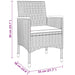 Mit ihrem eleganten Design ist diese Garten-Essgruppe eine ausgezeichnete Wahl für Mahlzeiten oder zum Entspannen auf Ihrer Terrasse bzw. in Ihrem Garten. Starker Rahmen: Mit einem pulverbeschichteten Stahlrahmen, der mit witterungsbeständigem, UV-beständigem PE-Rattan umwickelt ist, sind Tisch und Stühle langlebig und stabil.Bequeme Stühle: Die Gartenstühle haben ein ergonomisches Design für maximalen Komfort. Kissen sind für zusätzliches Sitzvergnügen mit dabei.Praktischer Tisch: Die Tischplatte besteht aus gehärtetem Glas, das leicht zu reinigen und zu pflegen ist. Hinweis:Um die Lebensdauer deiner Gartenmöbel zu verlängern, empfehlen wir dir, sie mit einer wasserdichten Hülle zu schützen.