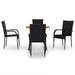 Schaffen Sie mit dieser Garten-Essgruppe eine überzeugende und zusammenhängende Ästhetik in Ihrem Außenbereich! Dieser Gartentisch ist aus massivem Akazienholz gefertigt, was ihn robust und stabil macht. Durch die geölte Oberfläche lässt sich der Tisch zudem leicht mit einem feuchten Tuch reinigen. Darüber hinaus tragen die geschwungenen Beine zu seinem stilvollen Design bei. Mit einem Stahlrahmen, der mit wetterfestem PE-Rattan bespannt ist, sind diese Esszimmerstühle robust und leicht zu reinigen. Die Gartenstühle können bei Nichtgebrauch platzsparend gestapelt werden. Hinweis: Um die Lebensdauer Ihrer Gartenmöbel zu verlängern, empfehlen wir Ihnen, diese regelmäßig zu reinigen und bei Nichtgebrauch im Freien abzudecken.Reinigung: Verwenden Sie eine milde SeifenlösungLagerung: Wenn möglich, an einem kühlen, trockenen Ort im Innenbereich lagern. Wenn das Produkt im Freien gelagert wird, schützen Sie es mit einer wasserdichten Abdeckung. Wischen und trocknen Sie das überschüssige Wasser oder den Schnee nach Regen oder Schneefall von der ebenen Fläche. Sorgen Sie für eine ausreichende Luftzirkulation, um feuchtigkeitsbedingte Schäden zu vermeiden.