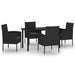 Genießen Sie eine schöne Mahlzeit oder einen Nachmittagstee in Ihrem Außenbereich mit diesem Garten-Essset! Mit seinem eleganten Design wird es zum Blickfang in Ihrem Garten und auf Ihrer Terrasse! Das praktische Esszimmer-Set für draußen hat einen Stahlrahmen, der es stark und robust macht. Die Gartenstühle sind aus wasserbeständigem und wartungsfreiem PE-Rattan gefertigt und eignen sich daher perfekt für den Einsatz im Freien. Die glatte Glastischplatte ist mit einem feuchten Tuch leicht zu reinigen und eignet sich hervorragend zum Abstellen von Speisen, Getränken und anderen dekorativen Gegenständen. Darüber hinaus sind die dicken, abnehmbaren Sitzkissen sehr kuschelig. Hinweis: Um die Lebensdauer Ihrer Gartenmöbel zu verlängern, empfehlen wir Ihnen, diese regelmäßig zu reinigen und im Freien vor Niederschlägen oder starken Sonnenstrahlen zu schützen.Reinigung: Verwenden Sie eine milde Seifenlösung.Lagerung:Wenn möglich, an einem kühlen, trockenen Ort im Innenbereich lagern. Wenn das Produkt im Freien gelagert wird, schützen Sie es mit einer wasserdichten Abdeckung. Wischen und trocknen Sie das überschüssige Wasser oder den Schnee, nach Regen oder Schneefall. Sorgen Sie für eine ausreichende Luftzirkulation, um feuchtigkeitsbedingte Schäden zu vermeiden.