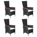 Schaffen Sie mit dieser Garten-Essgruppe eine überzeugende und zusammenhängende Ästhetik in Ihrem Außenbereich! Dieser Gartentisch ist aus massivem Akazienholz gefertigt, was ihn robust und stabil macht. Durch die geölte Oberfläche lässt sich der Tisch zudem leicht mit einem feuchten Tuch reinigen. Darüber hinaus tragen die geschwungenen Beine zu seinem stilvollen Design bei. Mit einem Stahlrahmen, der mit wetterfestem PE-Rattan bespannt ist, sind diese Esszimmerstühle robust und leicht zu reinigen. Die Armlehnen sind aus Akazienholz, einem tropischen Hartholz, das einen rustikalen Charme verleiht. Jeder Sitz ist mit einem dick gepolsterten Kissen ausgestattet, das für zusätzlichen Komfort beim Entspannen sorgt. Die Rückenlehne wird durch Ziehen des Knopfes an der Seite zurückgeklappt. Hinweis: Um die Lebensdauer Ihrer Gartenmöbel zu verlängern, empfehlen wir Ihnen, diese regelmäßig zu reinigen und bei Nichtgebrauch im Freien abzudecken.Reinigung: Verwenden Sie eine milde SeifenlösungLagerung: Wenn möglich, an einem kühlen, trockenen Ort im Innenbereich lagern. Wenn das Produkt im Freien gelagert wird, schützen Sie es mit einer wasserdichten Abdeckung. Wischen und trocknen Sie das überschüssige Wasser oder den Schnee nach Regen oder Schneefall von der ebenen Fläche. Sorgen Sie für eine ausreichende Luftzirkulation, um feuchtigkeitsbedingte Schäden zu vermeiden.