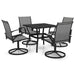 Schaffen Sie mit dieser Garten-Essgruppe eine überzeugende und zusammenhängende Ästhetik in Ihrem Außenbereich! Der Gartentisch und die Essstühle bestehen aus pulverbeschichtetem Stahl und sind daher robust und stabil. Die Sitzflächen und Rückenlehnen der Stühle bestehen aus atmungsaktivem Textilene-Gewebe, das für eine gute Belüftung sorgt und auch schnell trocknend ist. Die um 360 Grad drehbare runde Basis bietet Ihnen zusammen mit der ergonomischen Rückenlehne und den geschwungenen Armlehnen eine bessere Benutzererfahrung und höchsten Komfort.
